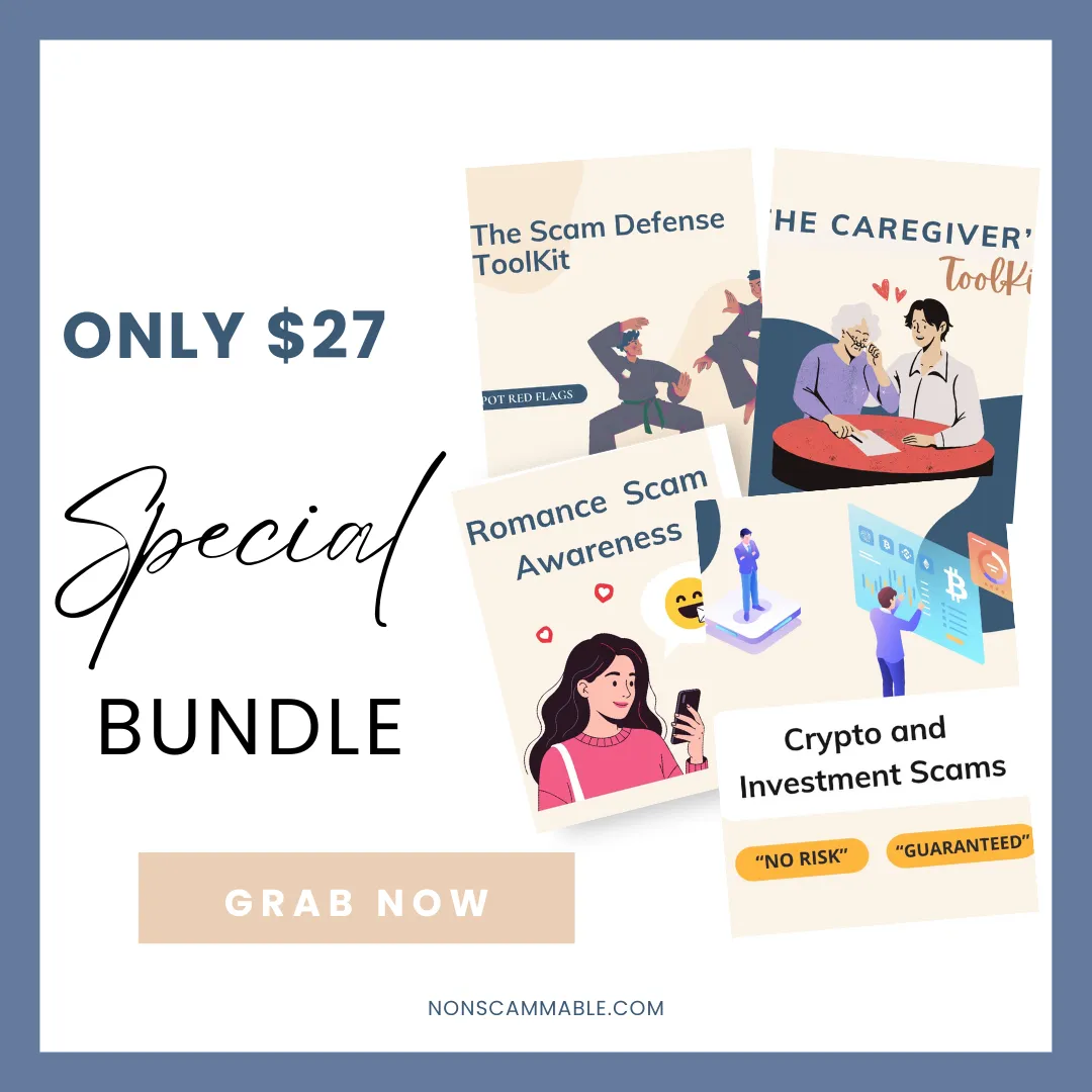 I've bundles all four resources, The Scam Defense Toolkit, Crypto and Investment Scams, The Caregiver Toolkit and Romance Scam Awareness together for a special deal of just $27.